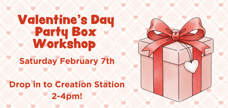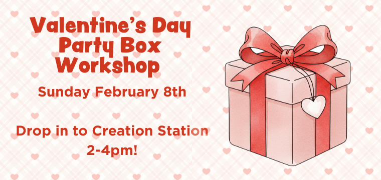 You asked, we delivered! Our Valentine’s Day Party Box Workshop is here! Kids can bring their own box or use one of ours to create and decorate the perfect box for their school Valentine’s Day exchange. With tons of decorating options and creativity galore, your child will leave with a personalized party-ready box. All materials included—and you get to leave the mess here!